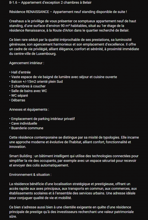 vous propose des appartements de haut standing dans une situation exceptionnelle à deux pas du centre Ville de Luxembourg, proche de toutes les