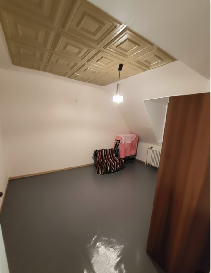 - Dachboden unter dem Dach, zugänglich über eine Luke (Firsthöhe 4,7 m)