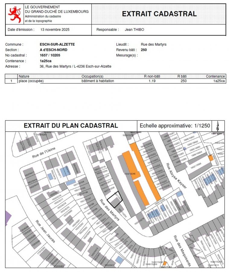 (adresse 36 rue des MARTYRS L-4236 Esch-sur-Alzette)